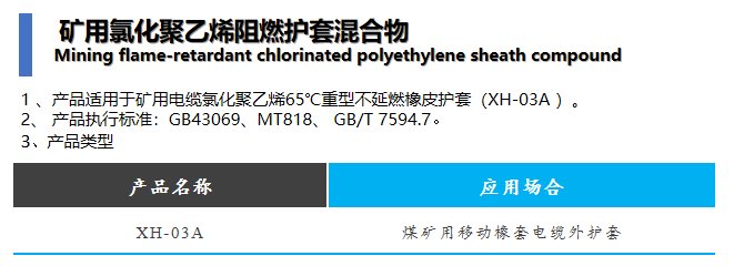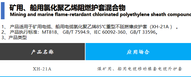 矿用、船用氯化聚乙烯阻燃护套混合物 Mining and marine flame-retardant chlorinated polyethylene sheath compound