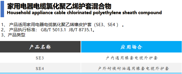 家用电器电缆胶料护套胶料Household appliance cable chlorinated polyethylene sheath compound